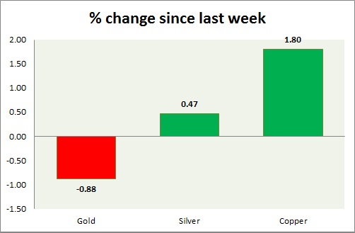 Metal pack is trading is mixed today, precious is down, while industrial is up. Performance this week at a glance in chart & table -
