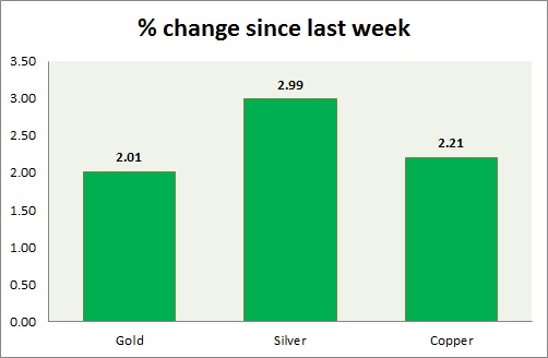 The metal pack is up today. Performance this week at a glance in chart & table -