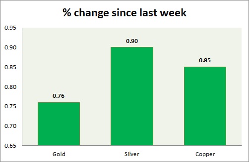 The metal pack is up today. Performance this week at a glance in chart & table -