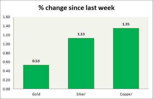 The metal pack is mixed today. Performance this week at a glance in chart & table -
