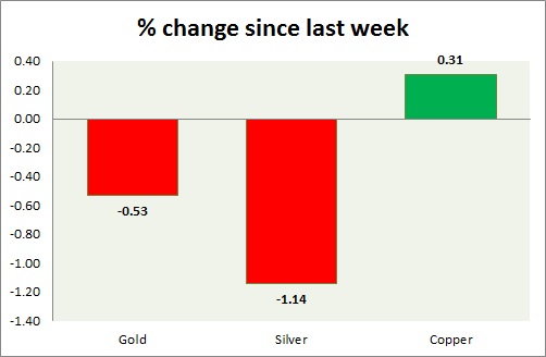 The metal pack is mixed today. Performance this week at a glance in chart & table -