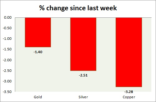 Metal pack is trading in red today. Performance this week at a glance in chart & table -