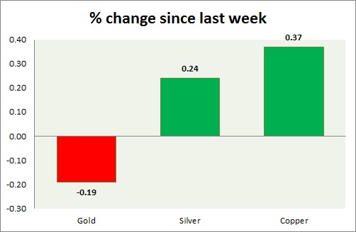 The metal pack is mixed today. Performance this week at a glance in chart & table -
