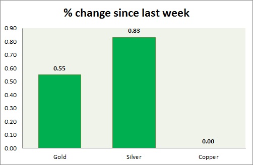 The metal pack is up today. Performance this week at a glance in chart & table -