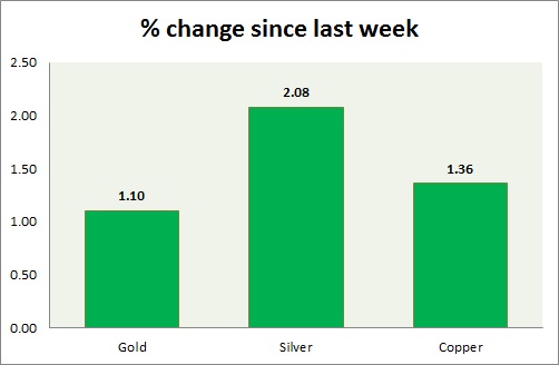 The metal pack is mixed today. Performance this week at a glance in chart & table -
