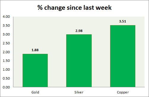 The metal pack is higher today. Performance this week at a glance in chart & table -