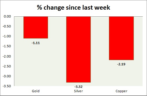 Metal pack is trading in red today. Performance this week at a glance in chart & table -