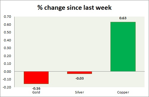 The metal pack is mixed today. Performance this week at a glance in chart & table -