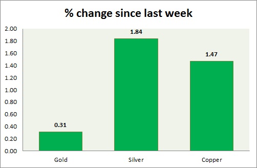 The metal pack is mixed today. Performance this week at a glance in chart & table -