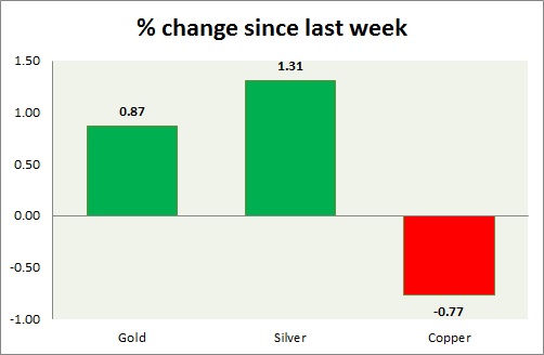The metal pack is down today. Performance this week at a glance at chart & table -