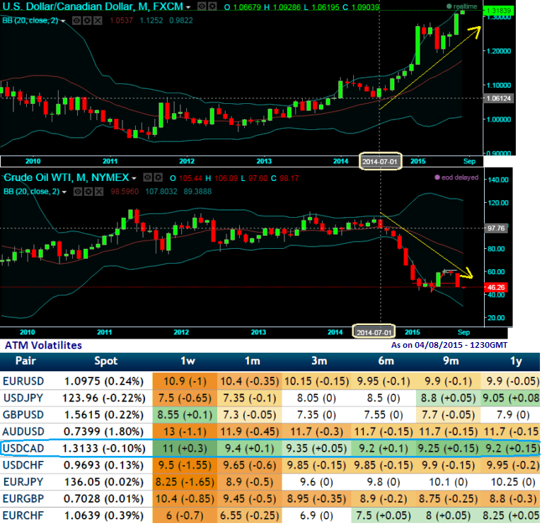 It has been almost more than a year that the crude oil front month light sweet crude and Canadian dollar have been diverging in the opposite direction. However, the capital inflows and outflows of Canada swamp the oil exporting valuations which are also offset by the fact that provinces in the east import oil.