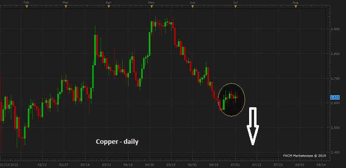 Copper is currently trading at $2.62/pound. A drop towards $2.4 area seems very likely as of now. Technically speaking copper bounces from key support area of 2.5 was halted below $2.65, which indicates strong bearish bias.