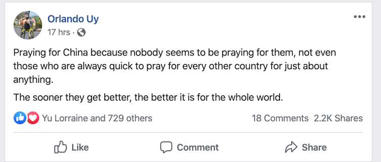 Some took to social media to ask why the world is not praying for Wuhan or China. Why are there no Facebook profile filters to show solidarity with those struggling against the virus?