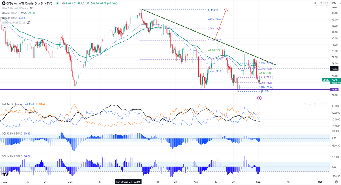 It is good to sell on rallies around $73.98-$74 with SL around $75 for TP of $71.70.