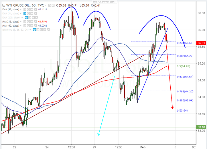 - Technically, the pair has formed a double top around $66.63 and any major bullishness can be seen only above that level. Any break above will take the commodity to next level till $67/$67.25.