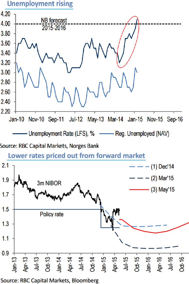 With policy rate at 1.50% last year there was plenty of room for markets to price in aggressive easing as oil prices fell from USD110/bbl to USD45/bbl.