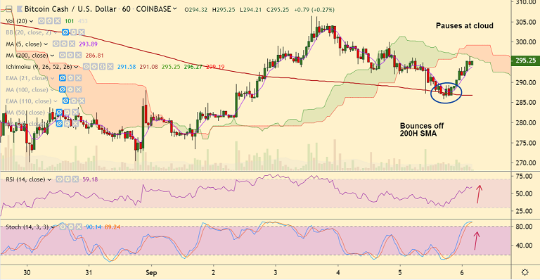 Bitcoin cash has bounced off 200H SMA support raising scope for further upside.