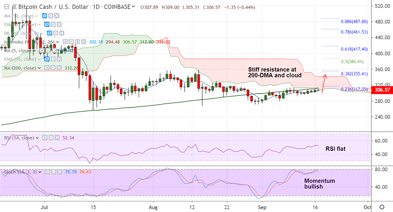 BCH/USD has failed to extend weakness below 200-DMA, bias is turning slightly bullish.