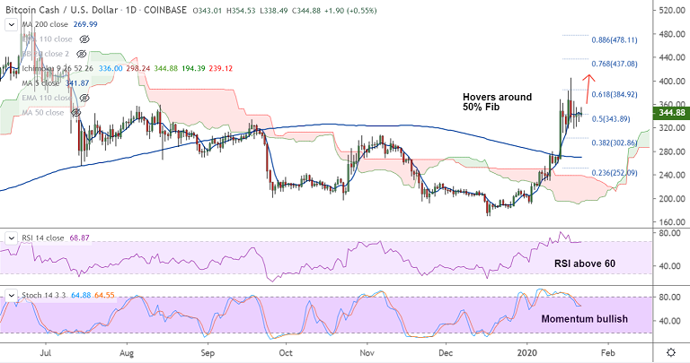 BCH/USD was trading 0.68% higher on the day at 345.31 at around 11:10 GMT.