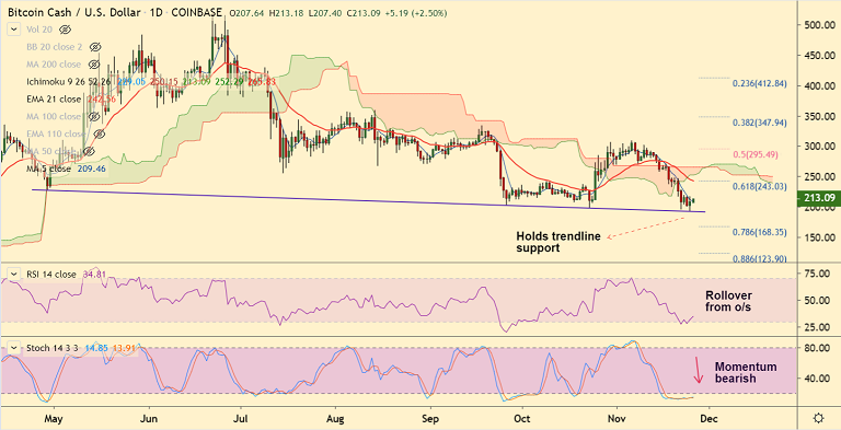 BCH/USD has bounced off strong trendline support, further weakness only on break below.