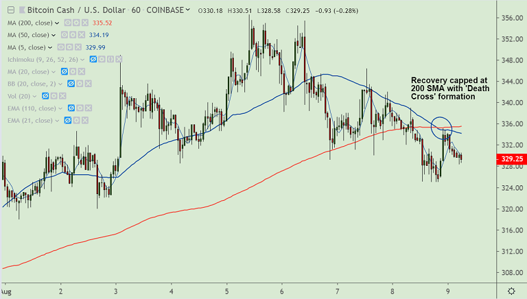 Recovery was capped below 200H SMA on the hourly charts. A 'Death Cross' formation adds to the bearish bias.