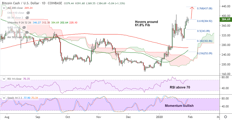 BCH/USD was trading 1.44% higher on the day at 385.10 at around 10:15 GMT, after closing largely muted in the previous session.