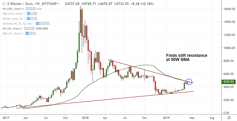 - Next major resistance lies at 5000 mark, ahead of 5471 (100W SMA) and then 6002 (23.6% Fib)