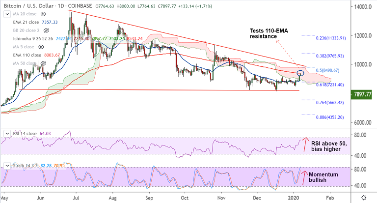 Support: 7564 (55-EMA); Resistance: 8003 (110-EMA)
