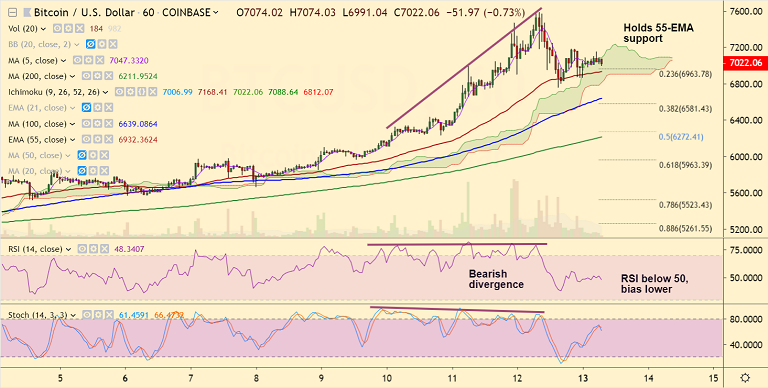 Immediate support seen at 1H 55-EMA at 6932, break below will see weakness.