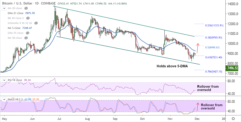 BTC/USD is extending marginal gains on the day, holds above 5-DMA support.