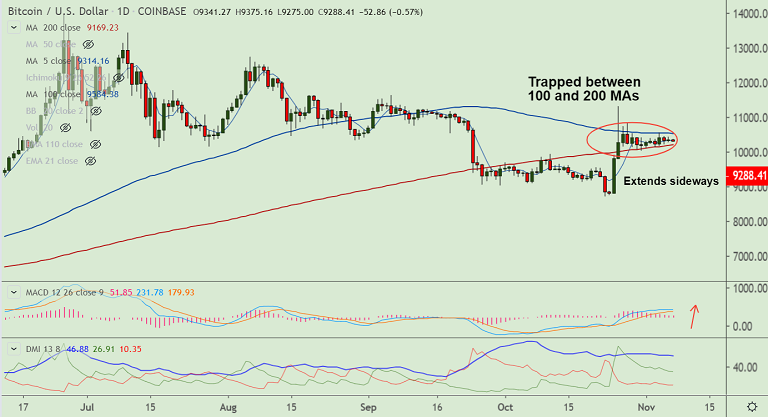 BTC/USD is extending sideways grind, trades directionless around 5-DMA.