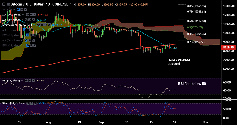 BTC/USD extends trading in tight range with session high at 8420 and low at 8306.