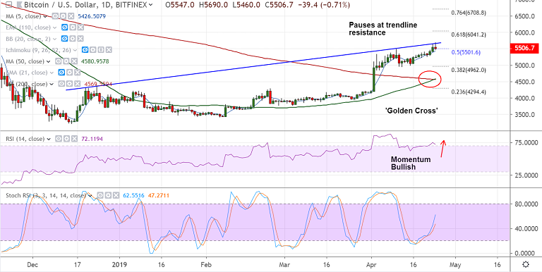 - Break below 5-DMA will see dip till 21-EMA. Bullish invalidation below 200-DMA