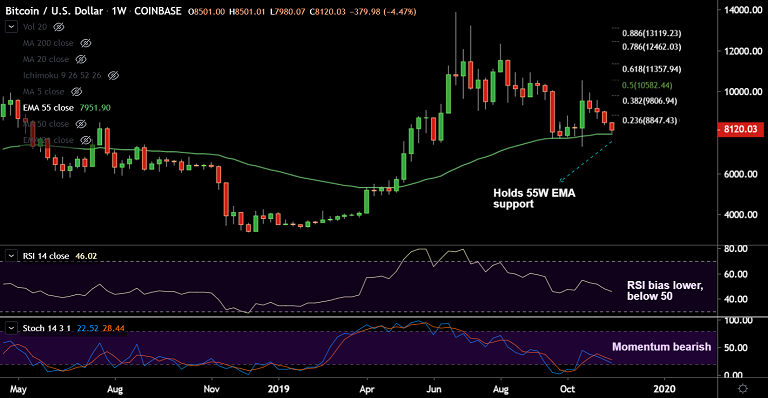Watch out for break above 5-DMA (8280) for minor upside. Next resistance lies at 8510 (200H SMA).