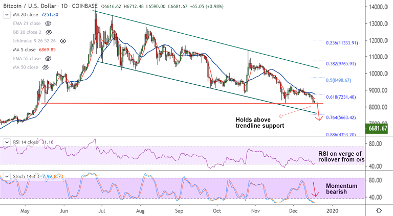 That said, break above 21H EMA (6715) could see minor gains till 6868 (5-DMA).