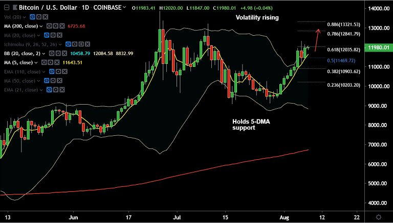 BTC/USD is hovering around 12,000 mark in the Asian session today.