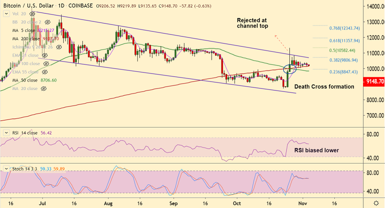 'Death Cross' formation (bearish 50-DMA crossover on 200-DMA) keeps scope for weakness.