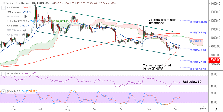 Major trend in the pair is bearish, Break above 21-EMA could see shift in near-term dynamics.