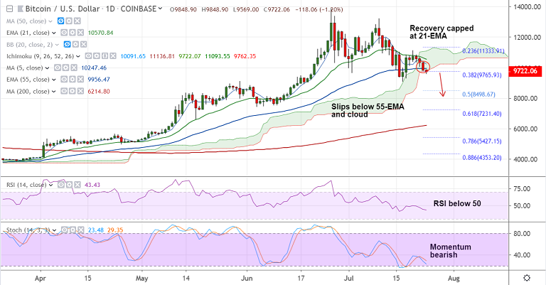 55-EMA is immediate resistance at 9956, break above 21-EMA required for a meaningful upside.