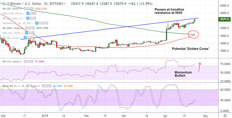 - BTC/USD spikes to hit new 2019 highs at 5647