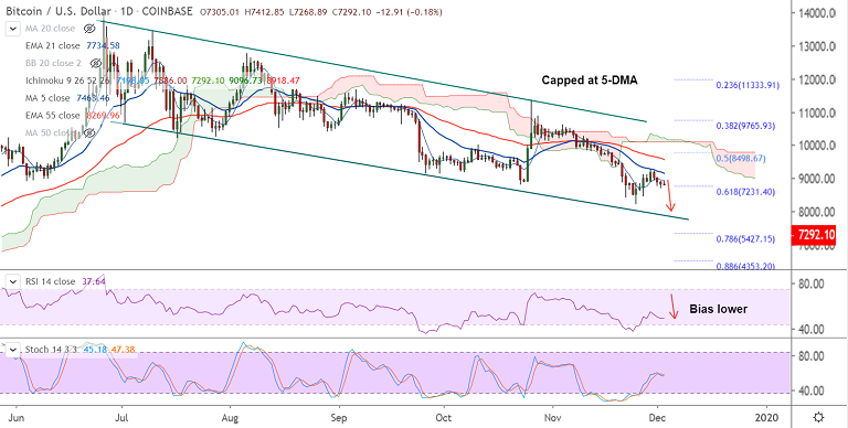 Support: 7231 (61.8% Fib); Resistance: 7468 (5-DMA)
