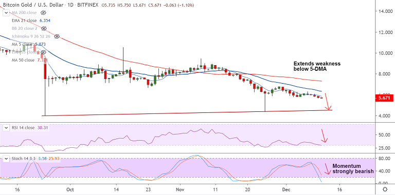 BTG/USD was trading 1.10% lower on the day at 5.671 at 07:00, after closing 2.25% lower in the previous session.