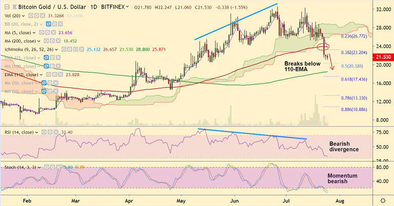 BTG/USD is consolidating slump below 110-EMA, bias is bearish.