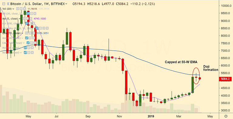 - BTC/USD struggling to hold above 5000 mark