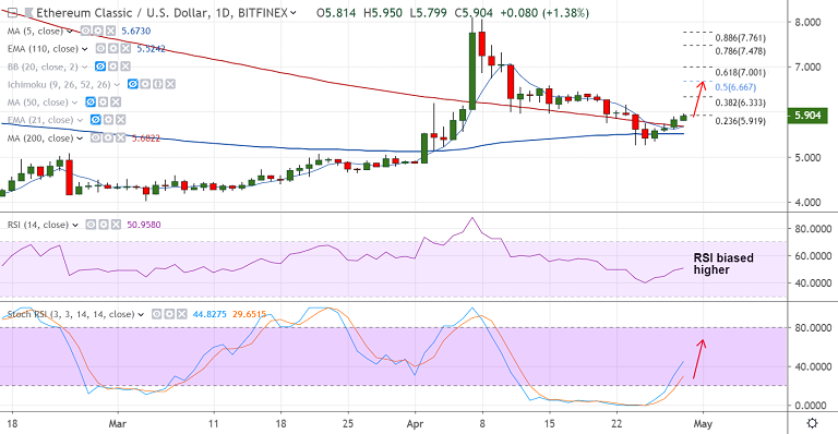 - On the flipside, retrace below 200-DMA will see dip till 110-EMA at 5.523. Further weakness on break below