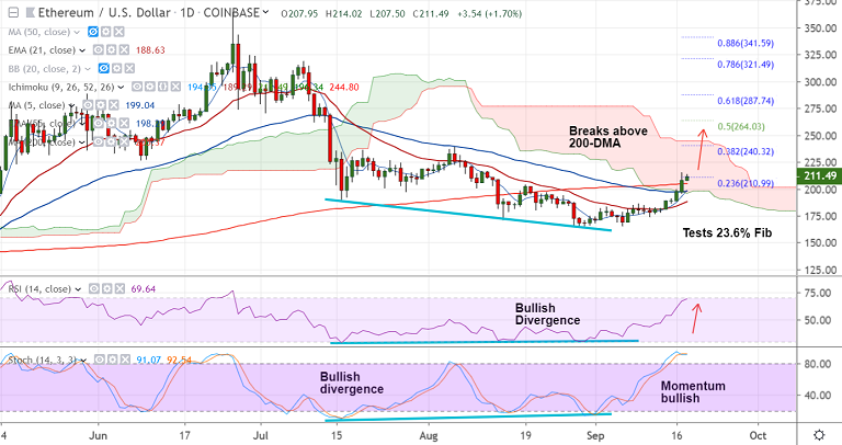 ETH/USD was trading 2.10% higher on the day at 212.27 at 03:00 GMT.