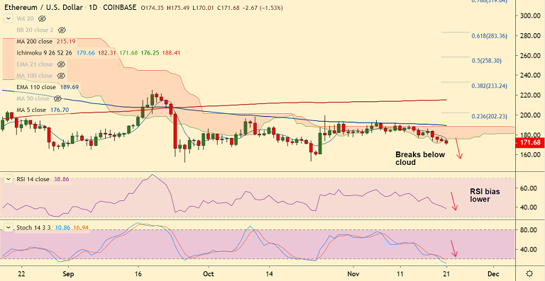 ETH/USD extends weakness for the 4th straight session, scope for further downside.