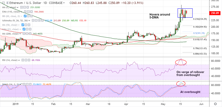 ETH/USD is extending sideways grind, hovers around 5-DMA