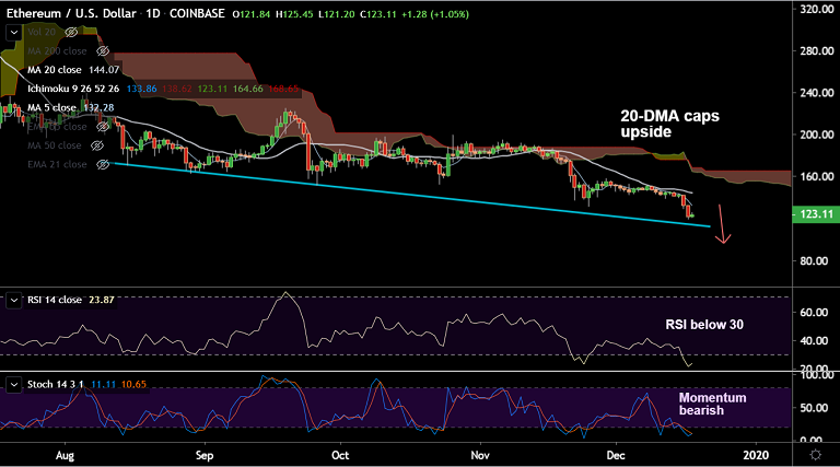 Retrace above 5-DMA will see minor gains till 200H MA at 140.90. Decisive break above 20-DMA could change near-term dynamics.