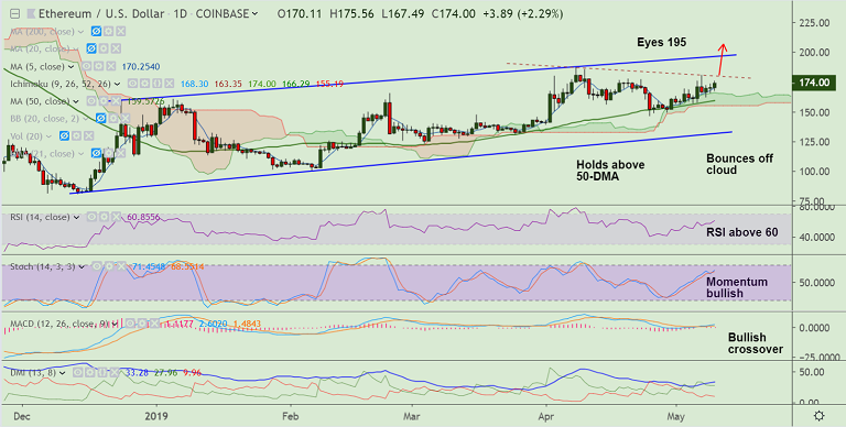 - ETH/USD extends gains, poised for test of 195 mark